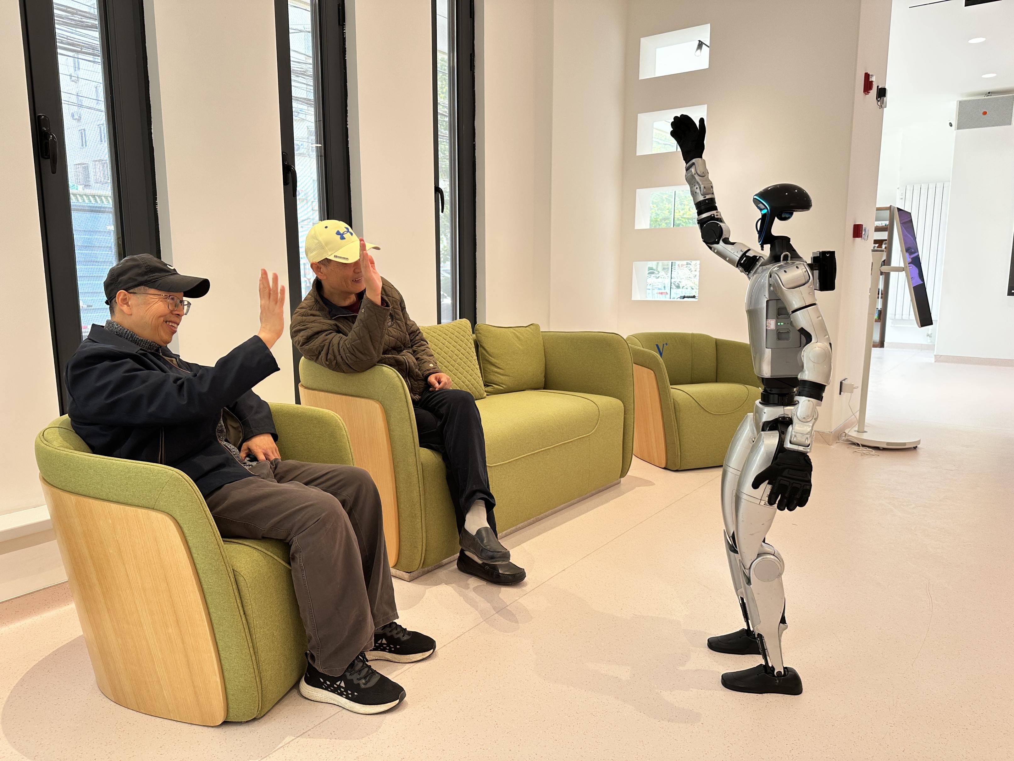 在当天举办的2025年朝阳区“敬老月”主题活动上,朝阳区老龄友好智慧体验中心正式启动。启动仪式上,宇树机器人走上舞台与市民招手互动,并作为“嘉宾”一起为朝阳区老龄友好智慧体验中心剪彩,邀请市民前来参观体验。