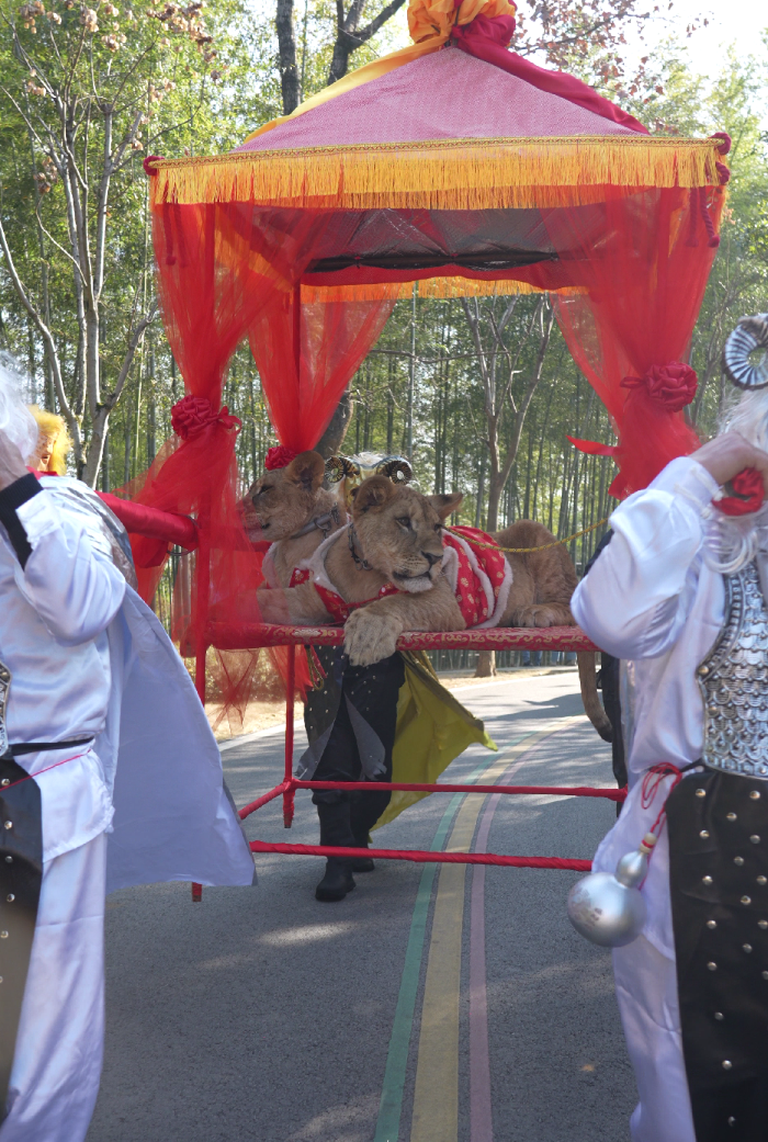 大皖新闻讯工作人员装扮成影视剧中的妖怪抬着花轿,上面有两只小狮子,身后还有人牵着水牛、马等动物在动物园里巡游……近日,这样一段视频在网上引起了不少网民的关注。有网民评论178炒股配资,“大王叫我来巡山。”“动物园都这么卷了吗?”也有网民询问,“狮子这样危险吗?”工作人员回复表示,小狮子才6个月大,已经拴在花轿上面。